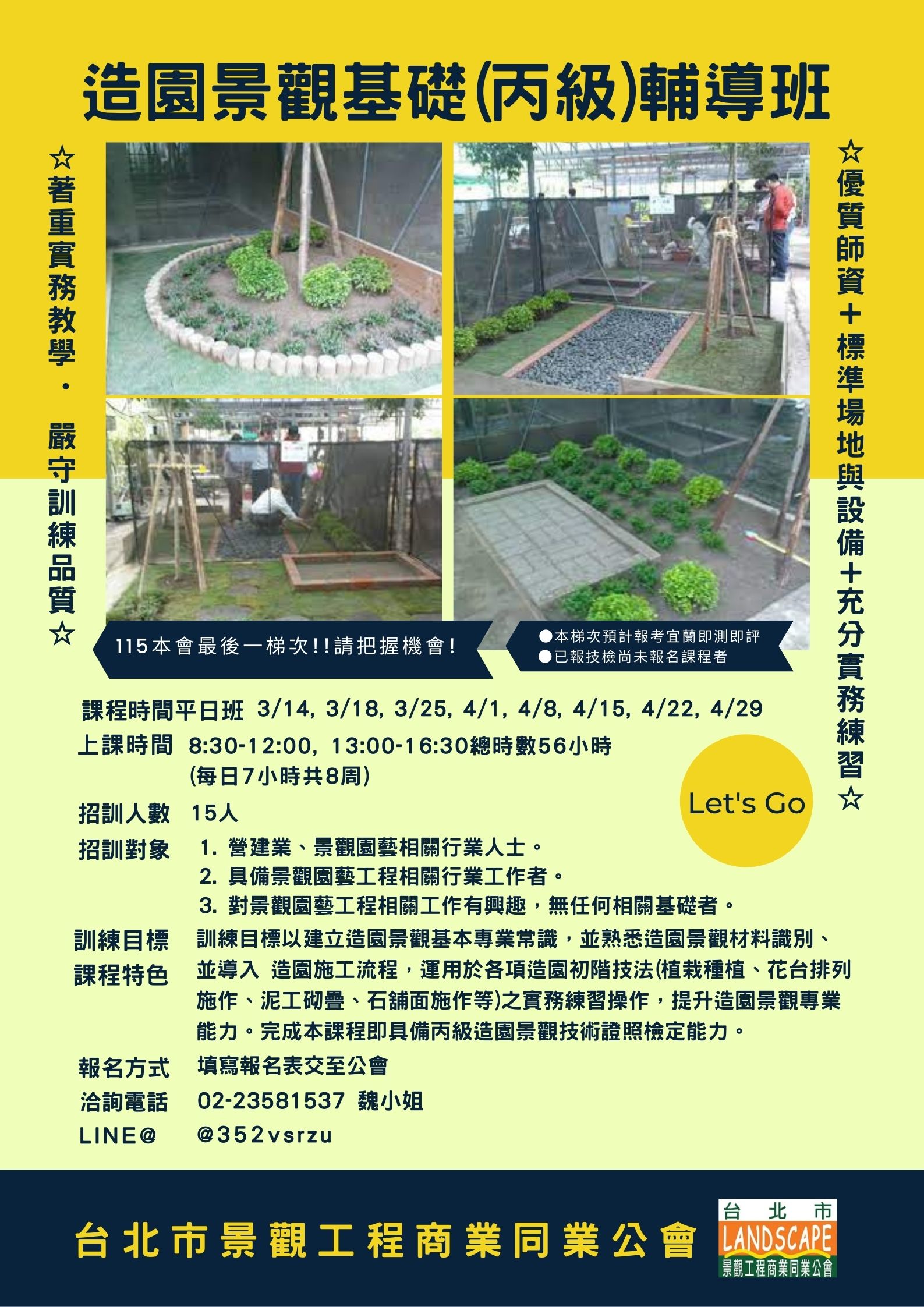 115年度造園景觀丙級技術士證照輔導班(平日班・加開班 )